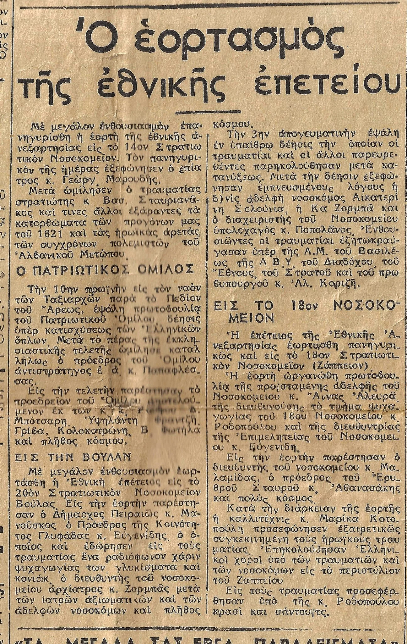 Όπως μας πληροφορεί και η εφημερίδα ΚΟΙΝΩΝΙΑ της 26ης Μαρτίου 1941: