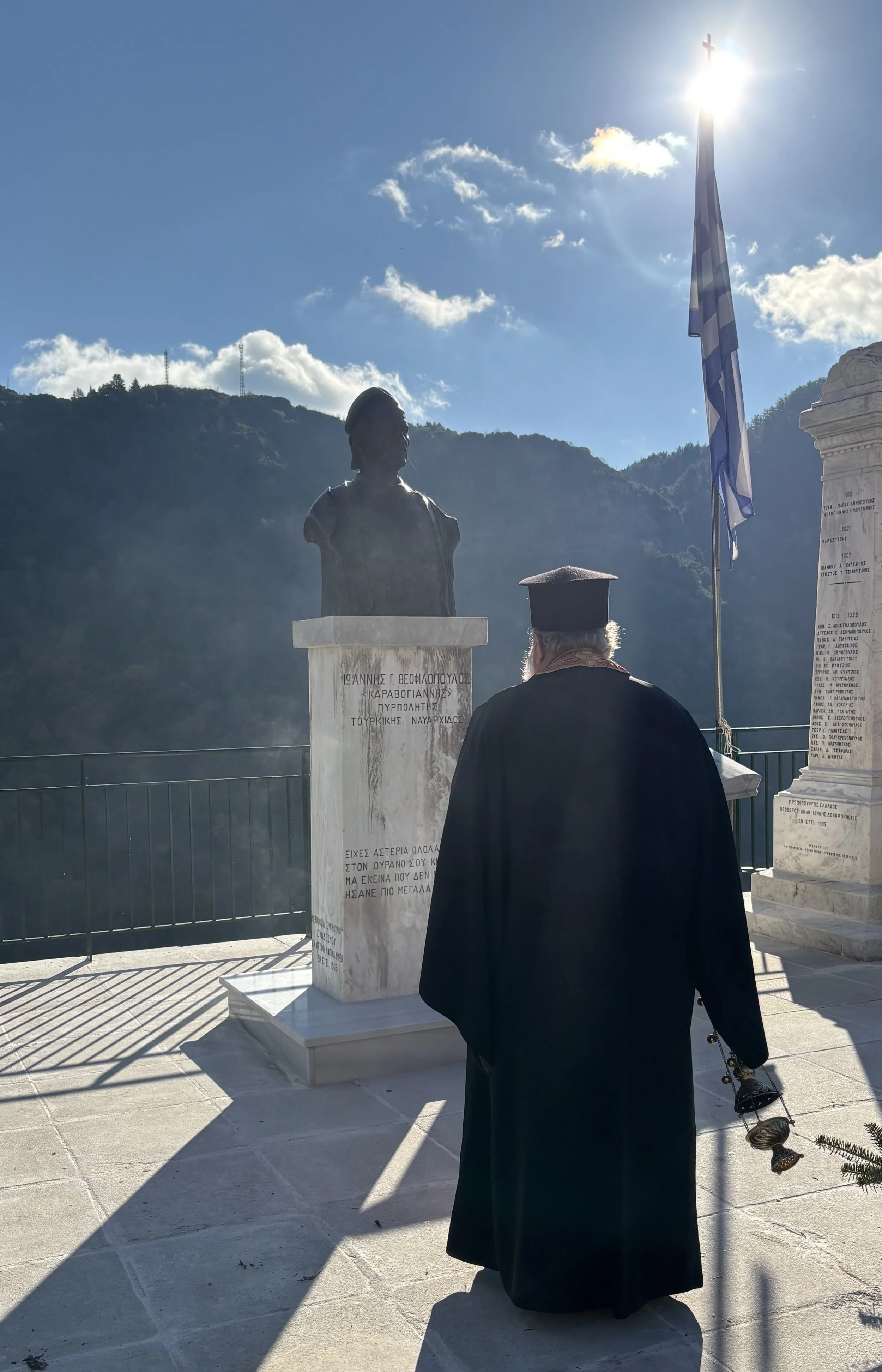 Λίγο μετά τις 10:15 το πρωί τελέστηκε Επιμνημόσυνη Δέηση στην Προτομή του Ήρωα του 1821 Ιωάννη Θεοφιλόπουλου (Καραβόγιαννου) από τον εφημέριο του Ιερού Ναού Παμμεγίστων Ταξιαρχών και με την παρουσία κατοίκων της περιοχής.