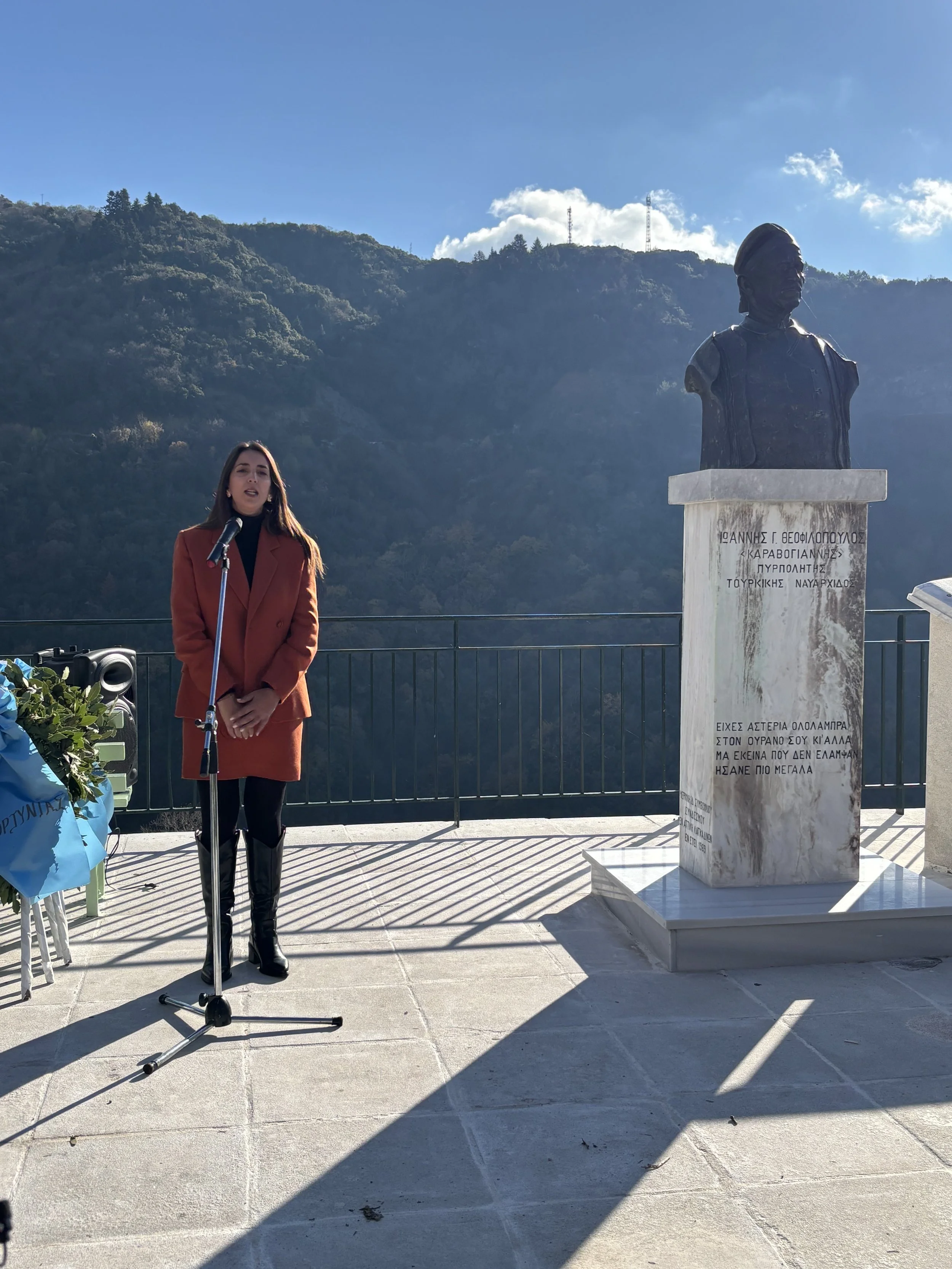 Ακολούθησαν σύντομοι χαιρετισμοί από την Αντιδήμαρχο Παιδείας και Αθλητισμού κα Πένυ Μπέτσα, τον Πρόεδρο του Παραρτήματος Πλοίαρχο (Ε) ε.α. Ζώη Υφαντή Π.Ν.